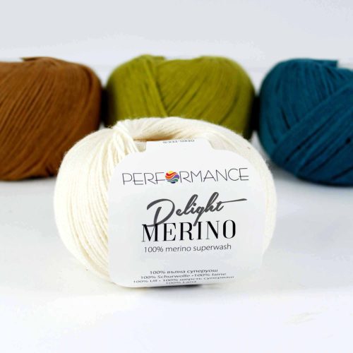 A Performance Merino Delight egy 100% merinó gyapjúból készült fonal superwash tulajdonságokkal, így nem zsugorodik és mosógépben is mosható a mosási utasításnak megfelelően.