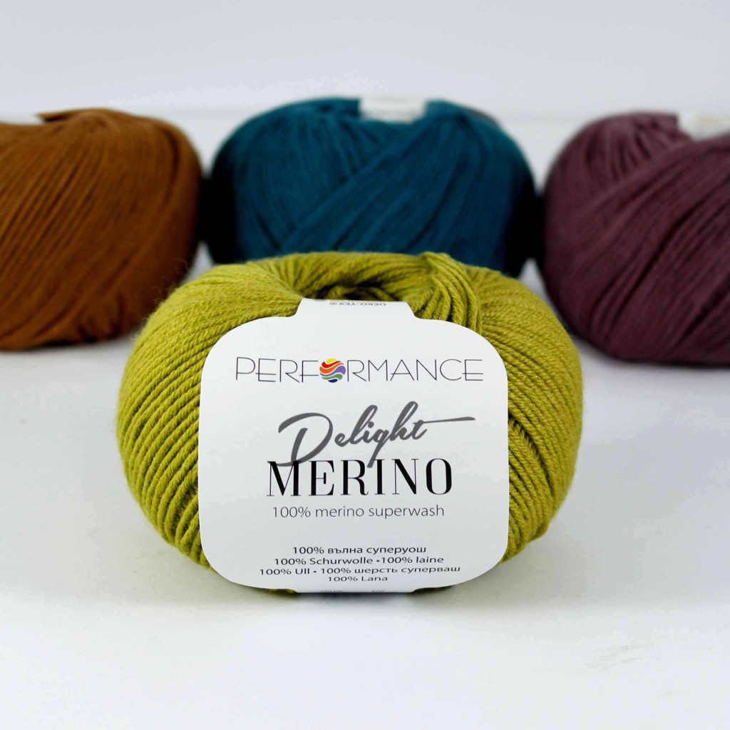 A Performance Merino Delight egy 100% merinó gyapjúból készült fonal superwash tulajdonságokkal, így nem zsugorodik és mosógépben is mosható a mosási utasításnak megfelelően.
