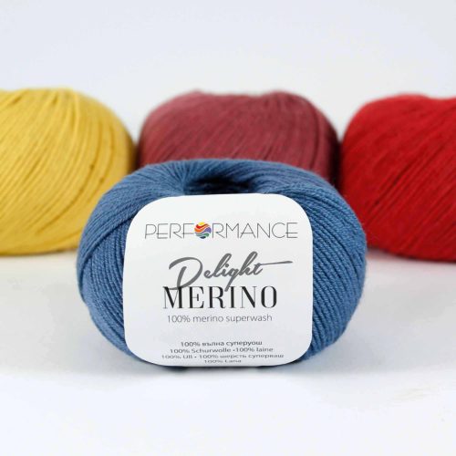 A Performance Merino Delight egy 100% merinó gyapjúból készült fonal superwash tulajdonságokkal, így nem zsugorodik és mosógépben is mosható a mosási utasításnak megfelelően.